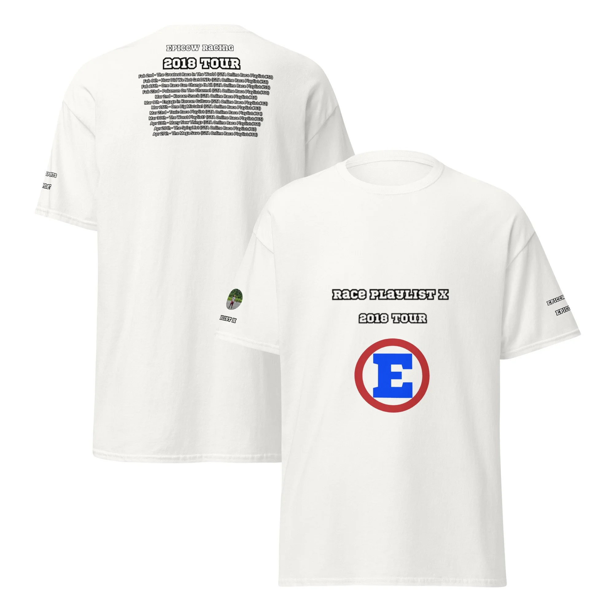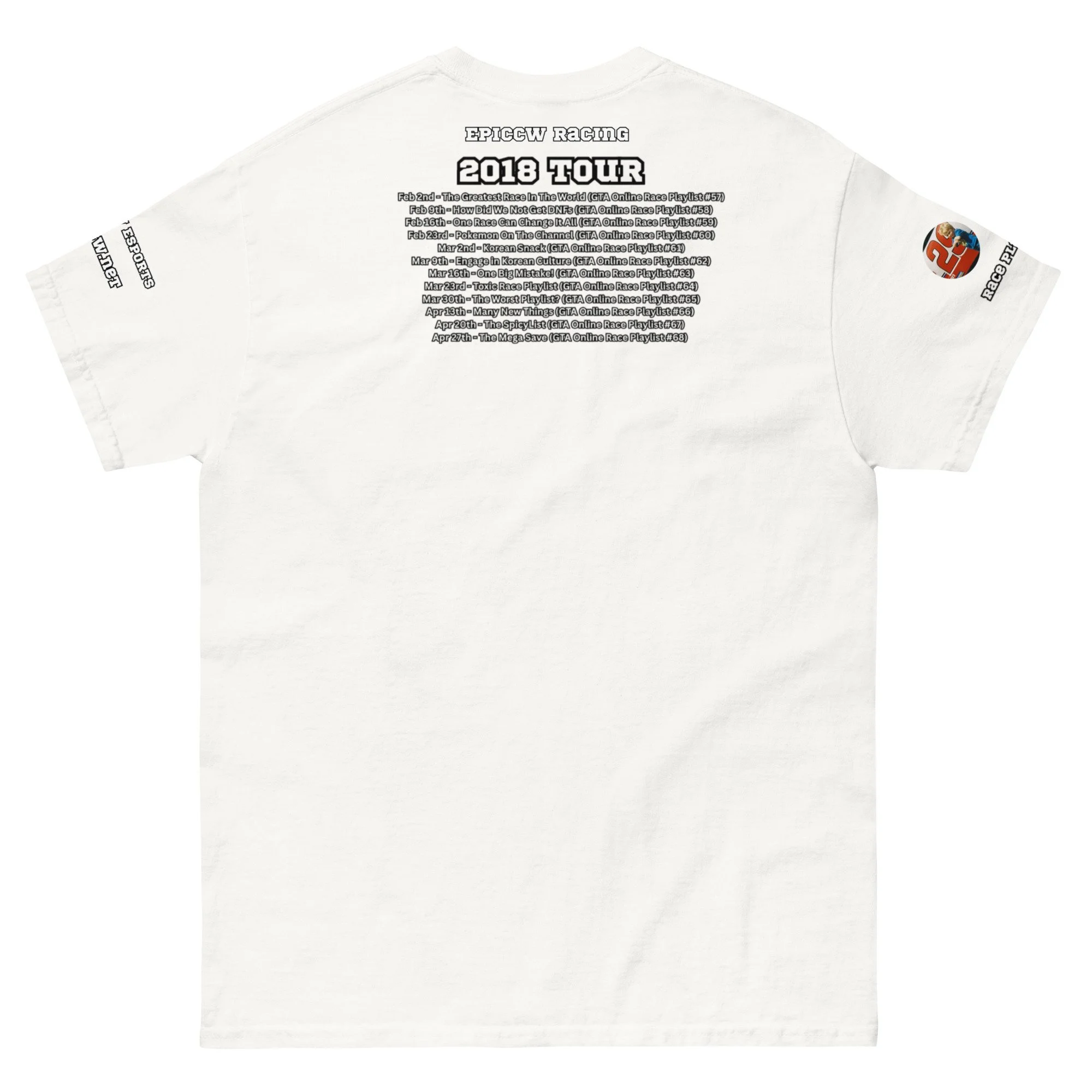 Celebrate 10 year's of the Epiccw Brands GTA Online Race Playlist video series with the Race Playlist X 2018 Tour shirt, highlighting all the series videos released that year!