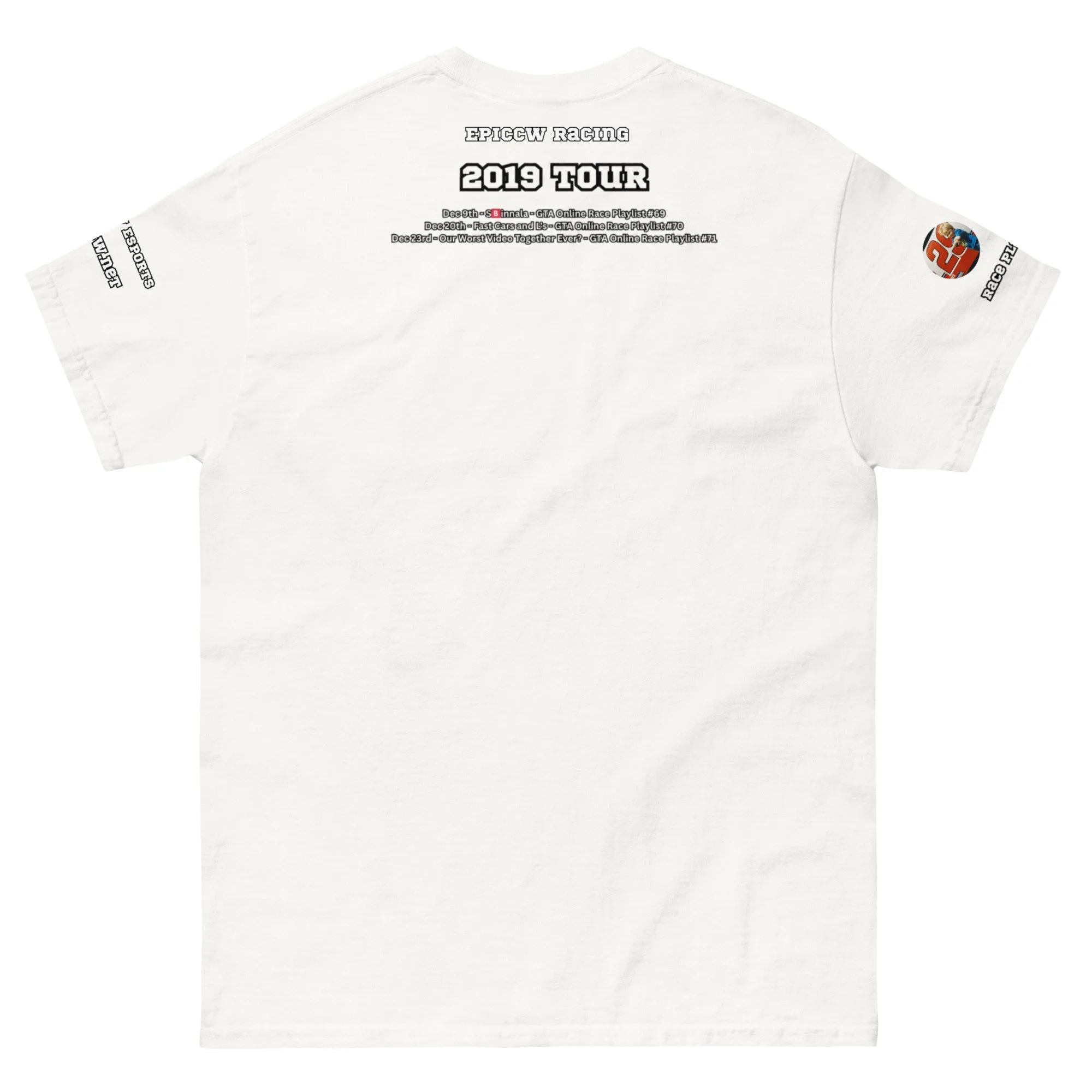 Celebrate 10 year's of the Epiccw Brands GTA Online Race Playlist video series with the Race Playlist X 2019 Tour shirt, highlighting all the series videos released that year!