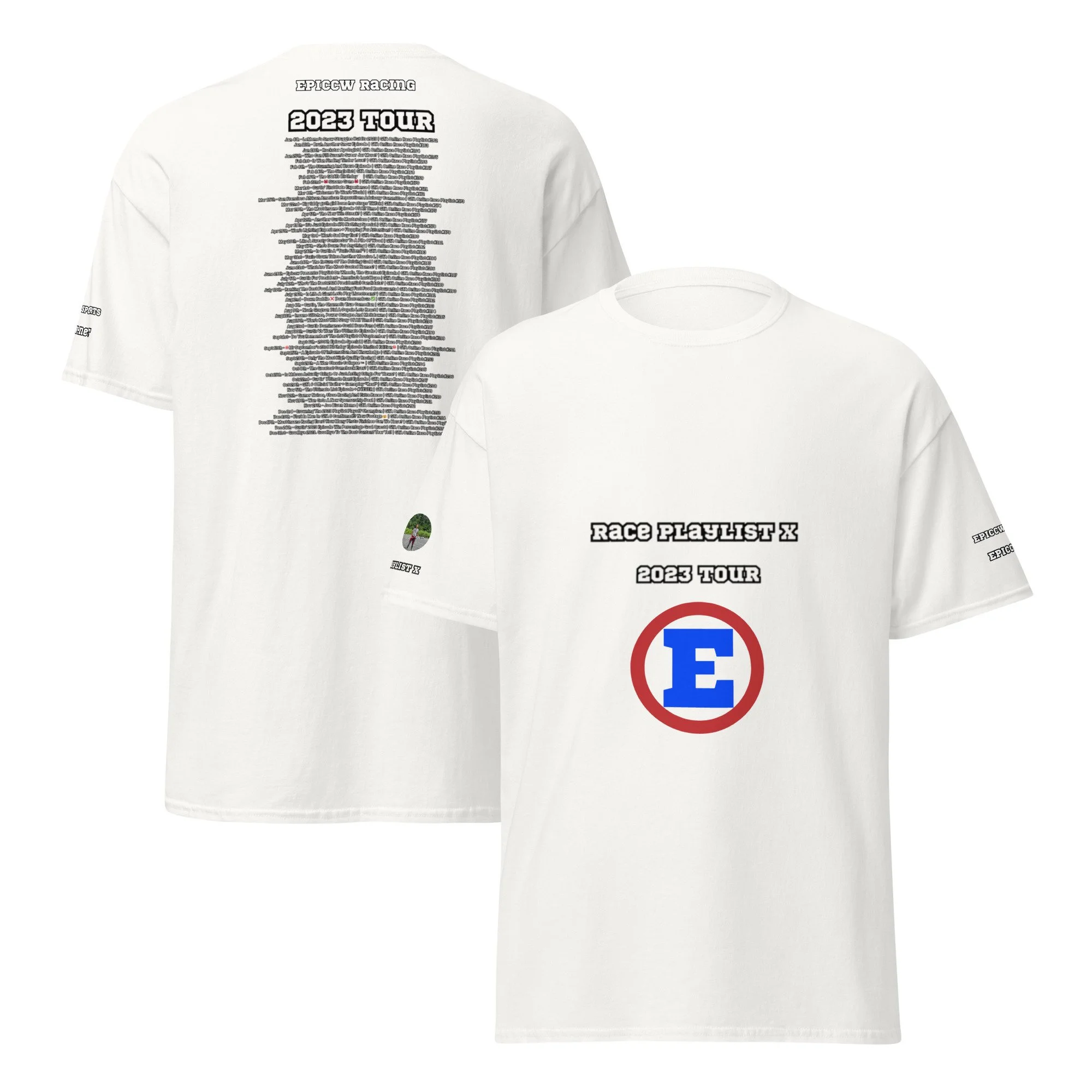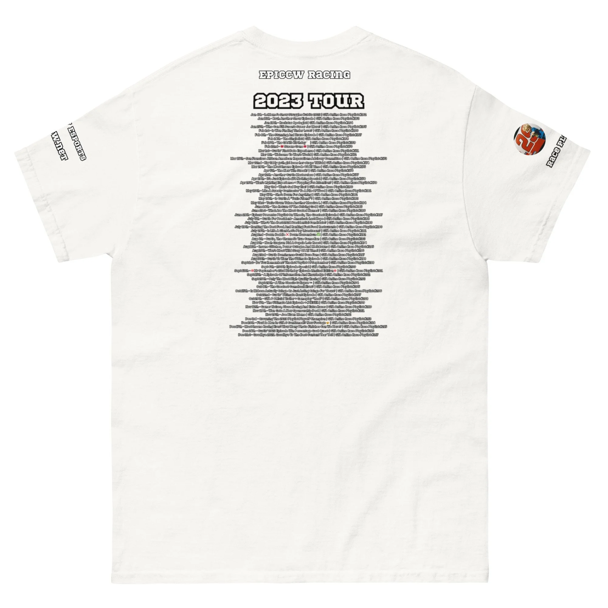 Celebrate 10 year's of the Epiccw Brands GTA Online Race Playlist video series with the Race Playlist X 2023 Tour shirt, highlighting all the series videos released that year!