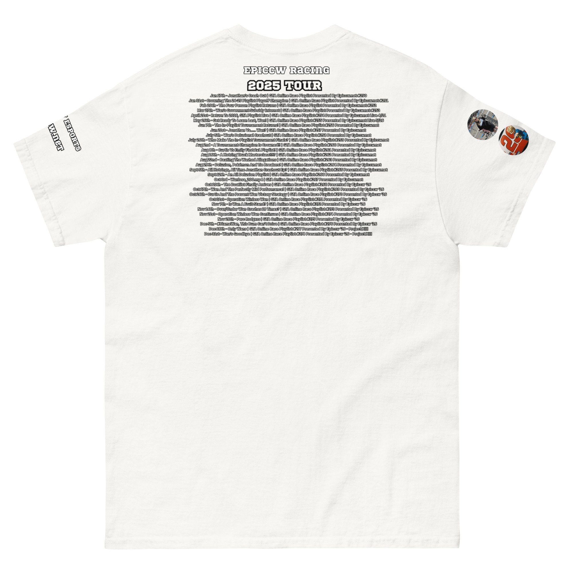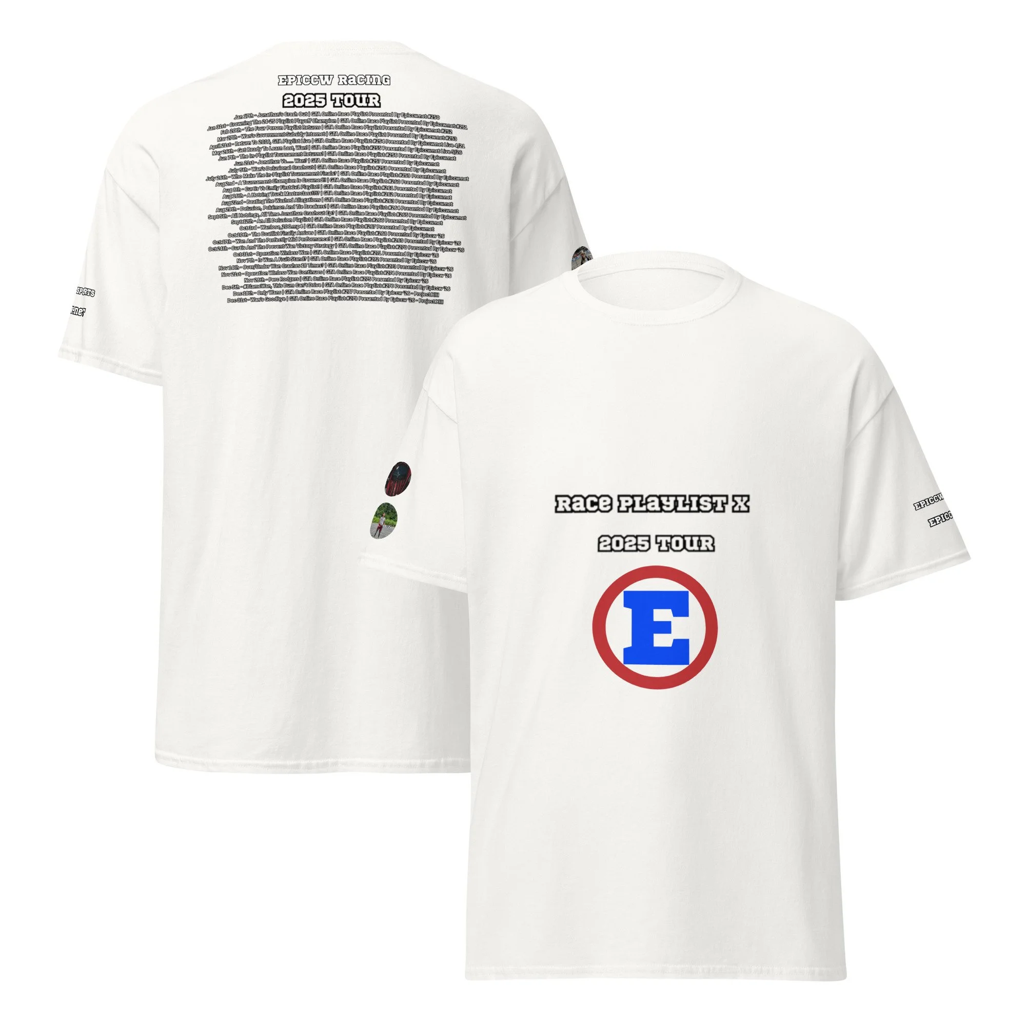 Celebrate 10 year's of the Epiccw Brands GTA Online Race Playlist video series with the Race Playlist X 2025 Tour shirt, highlighting all the series videos released that year!