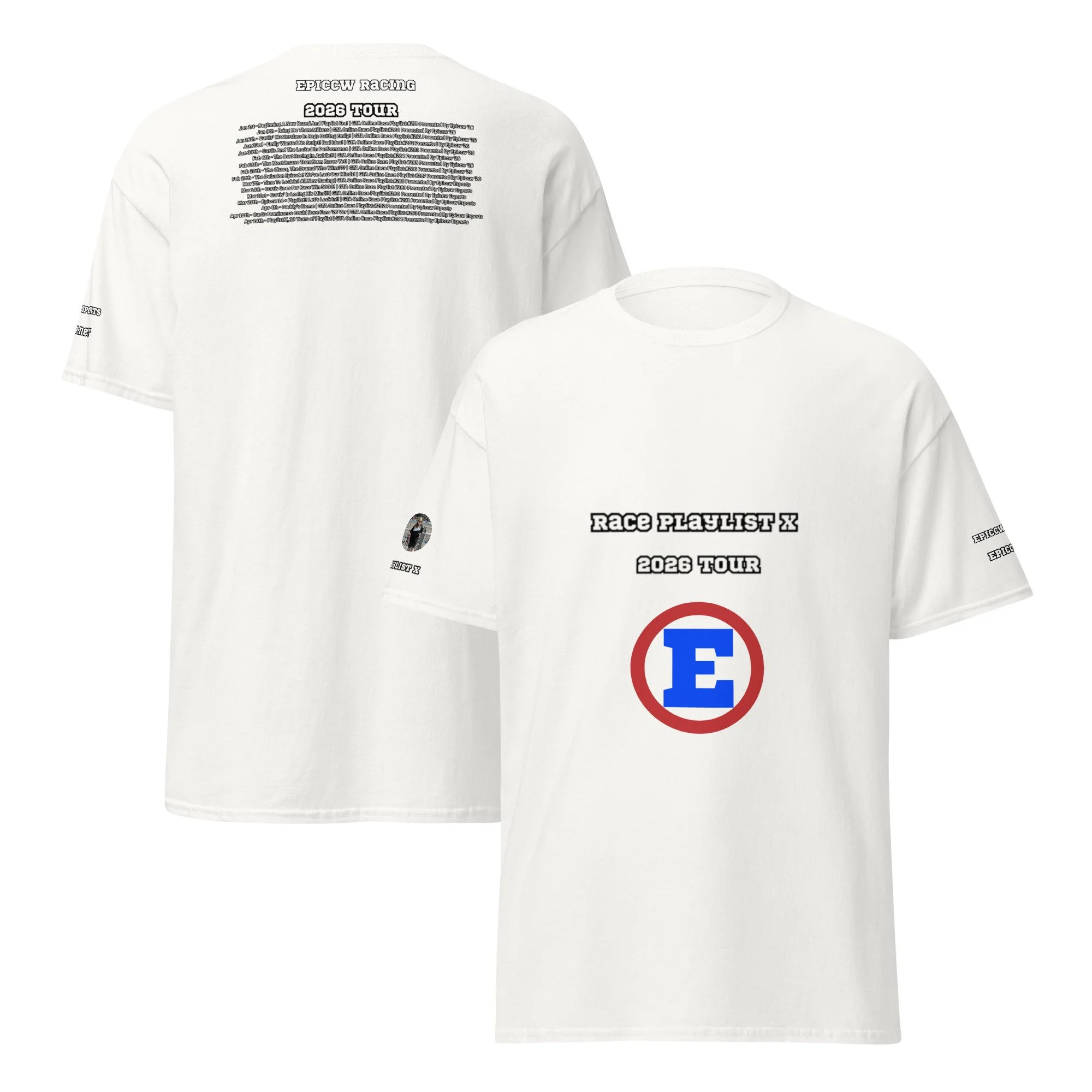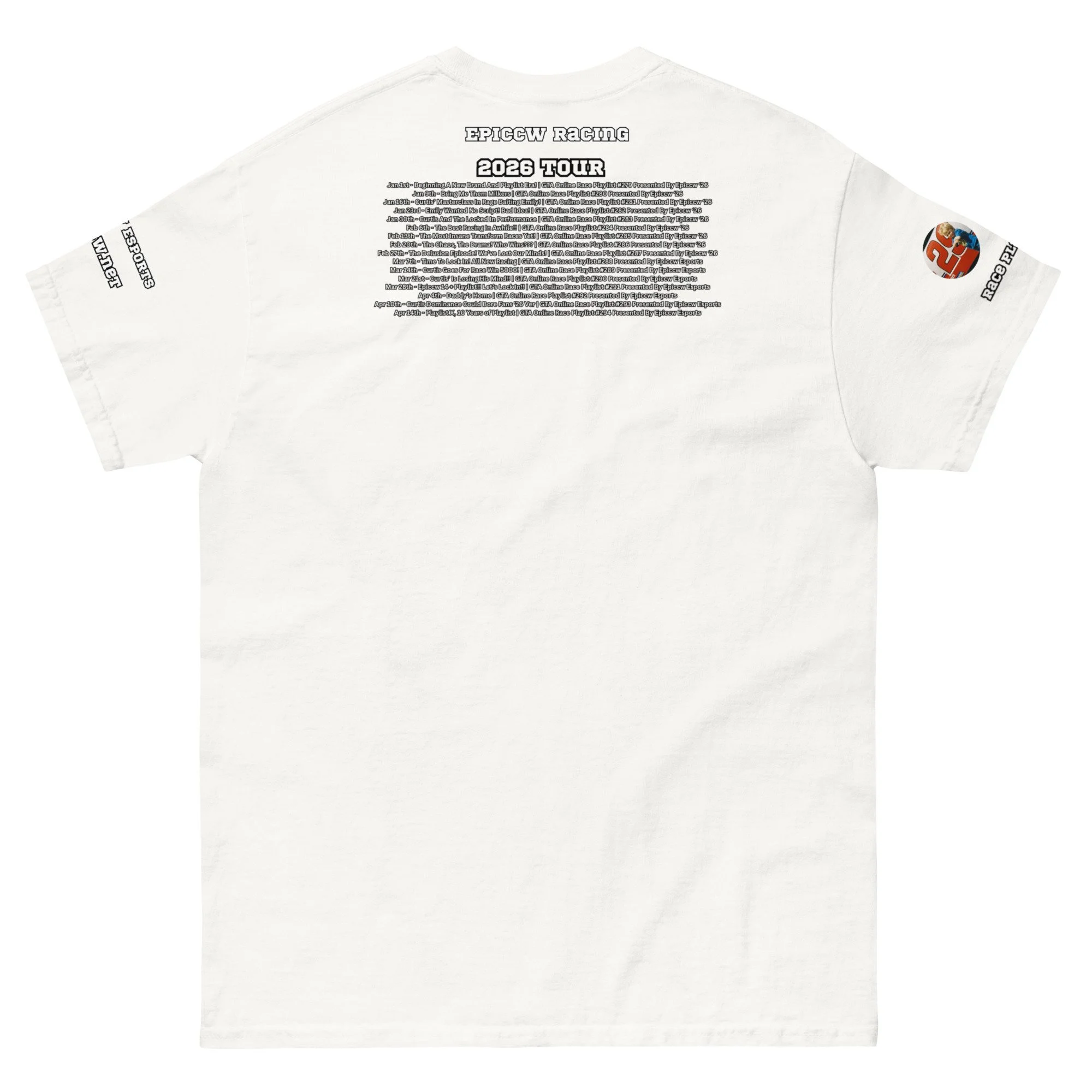 Celebrate 10 year's of the Epiccw Brands GTA Online Race Playlist video series with the Race Playlist X 2026 Tour shirt, highlighting all the series videos released that year!
